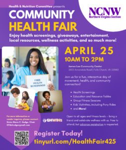 Join the Northern Virginia Section of NCNW, Inc. for our Annual Community Health Fair! A day dedicated to wellness, movement, and community connection — and YOU’RE invited!