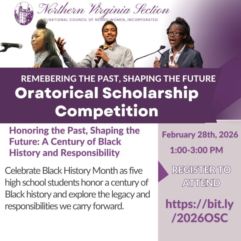 Join us for the 2026–2027 Oratorical Scholarship Competition hosted by the Northern Virginia Section of the National Council of Negro Women, Inc.